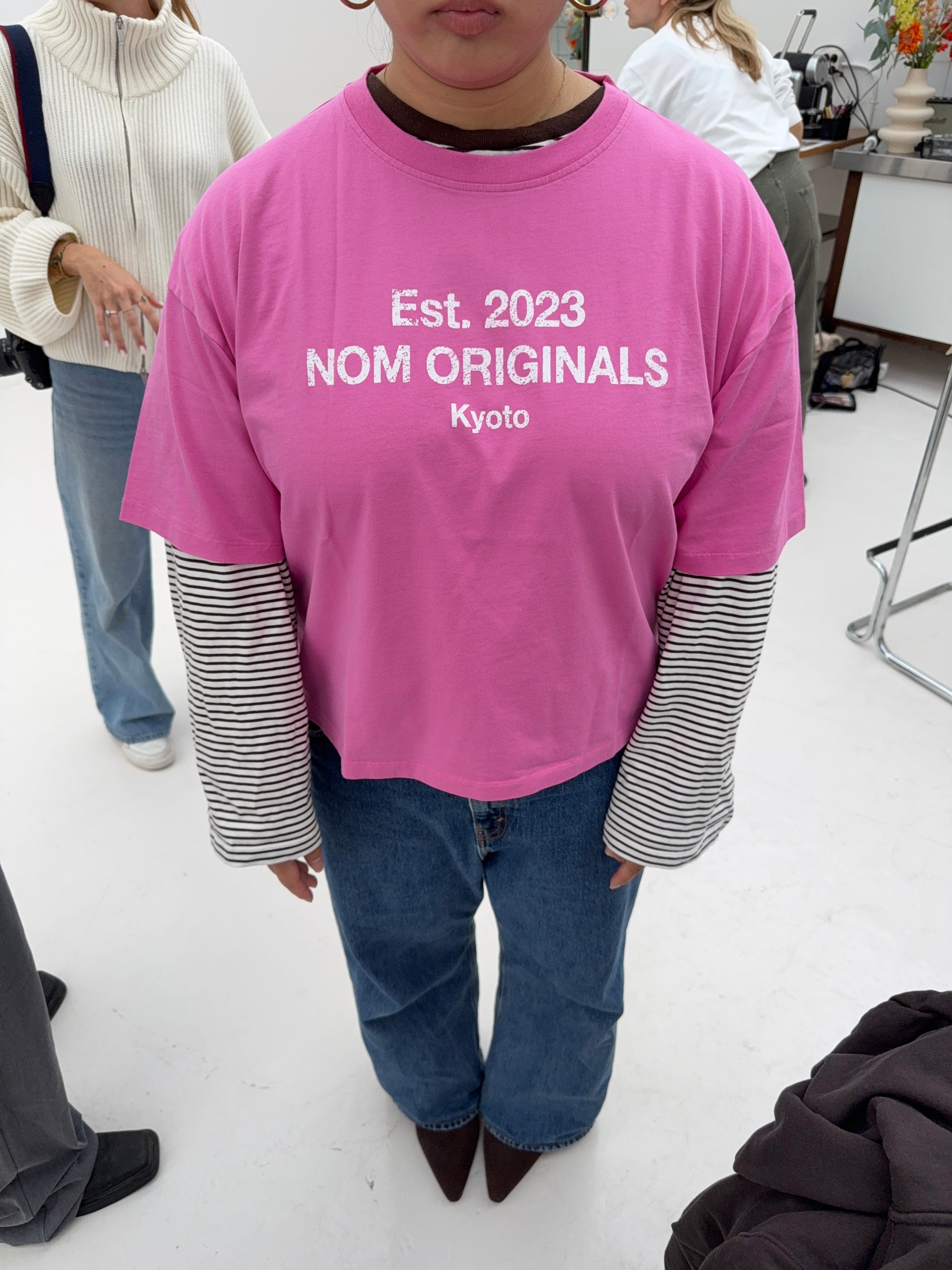 Boxy tee with a slightly cropped length, wide sleeves and body for cool everyday looks. Featuring NOM 3D logo. Buy your own size for an oversized fit, or size up for an extra wide fit.