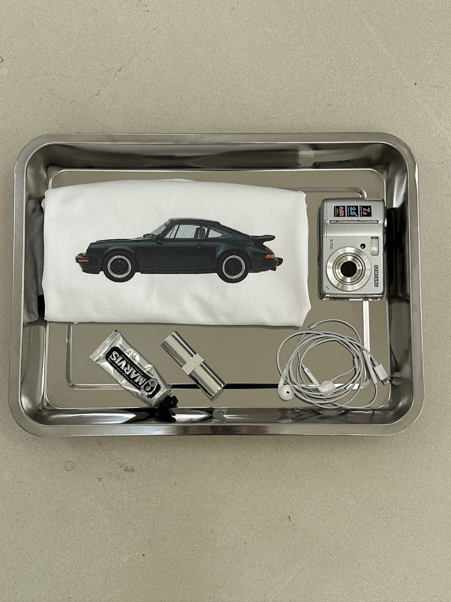 Slightly oversized tee with a wide neckline, raw overlock seams, and short boxy sleeves. Features a bold vintage car print and 3D nom logo - effortlessly cool and easy to style.