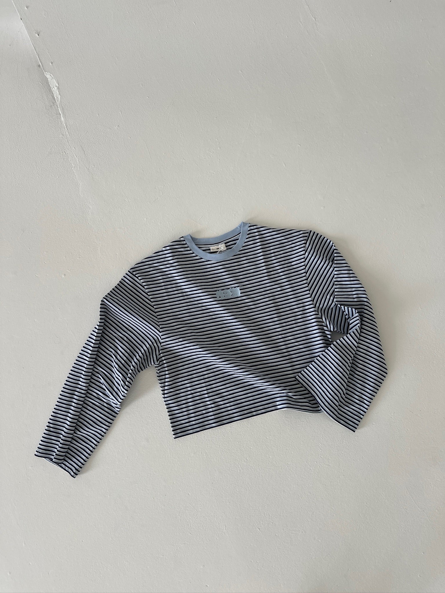Our oversize longsleeve has a wide fit and is an easy to wear style. The wide sleeves complement the cropped and boxy fit. We love the length of the sleeves, which create beautiful proportions. We would recommend one size up for a cool oversized fit (but be prepared that the arms will be longer).