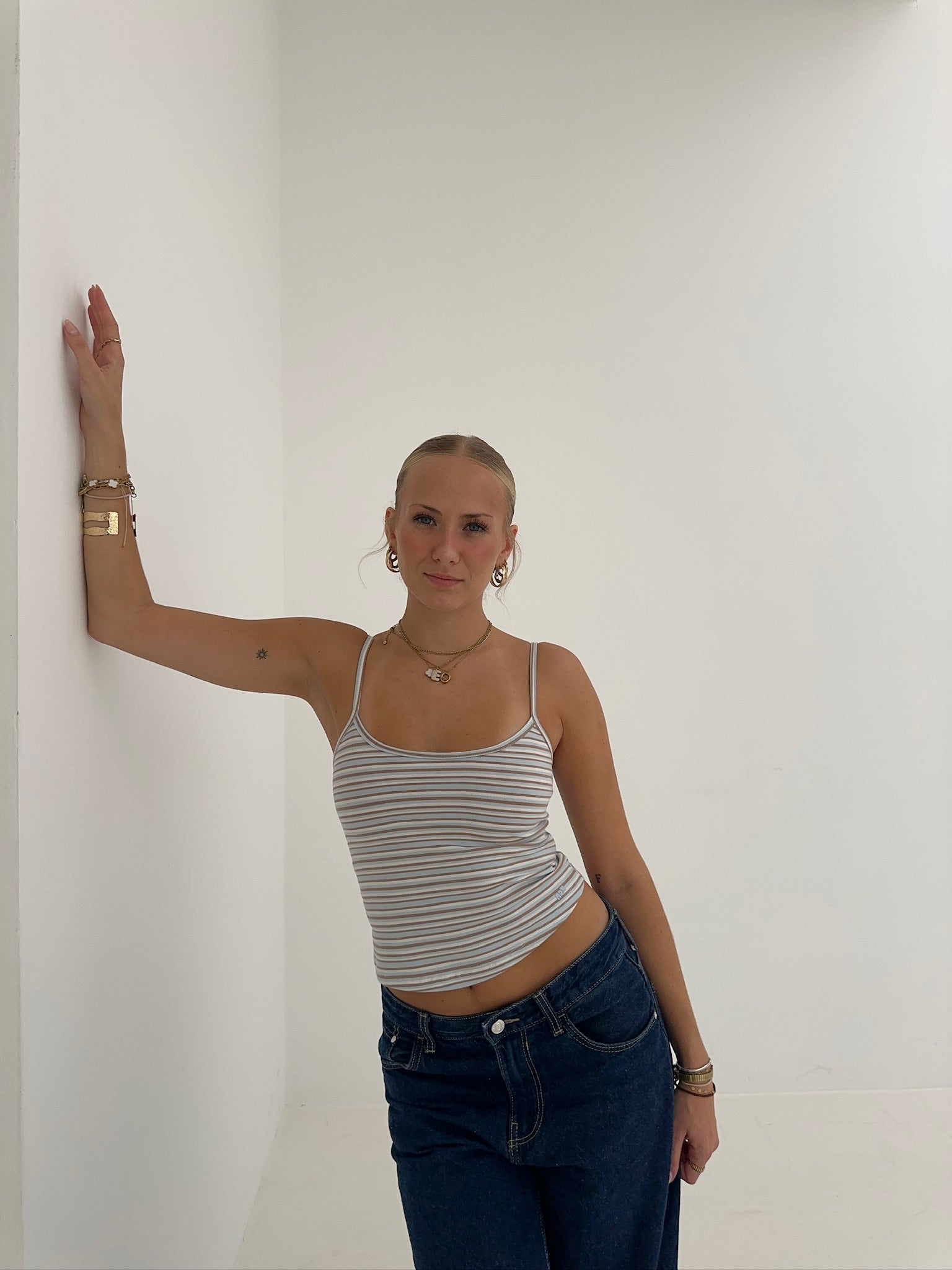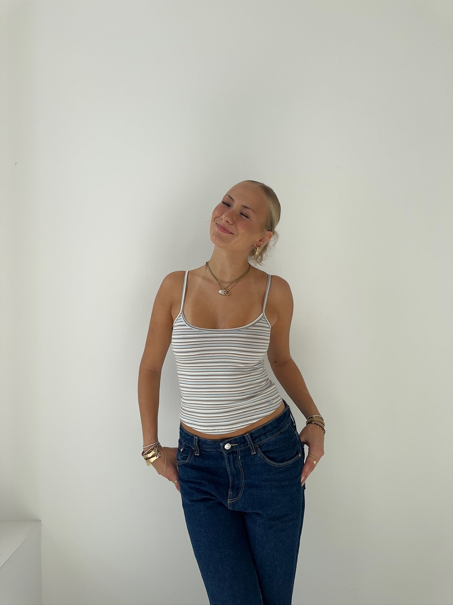 Crafted with premium quality in mind, our soft spaghetti top is made from a strong and comfortable blend of fabrics: 90% cotton and 10% elastane. It offers a pleasant feel on the skin and a great fit.