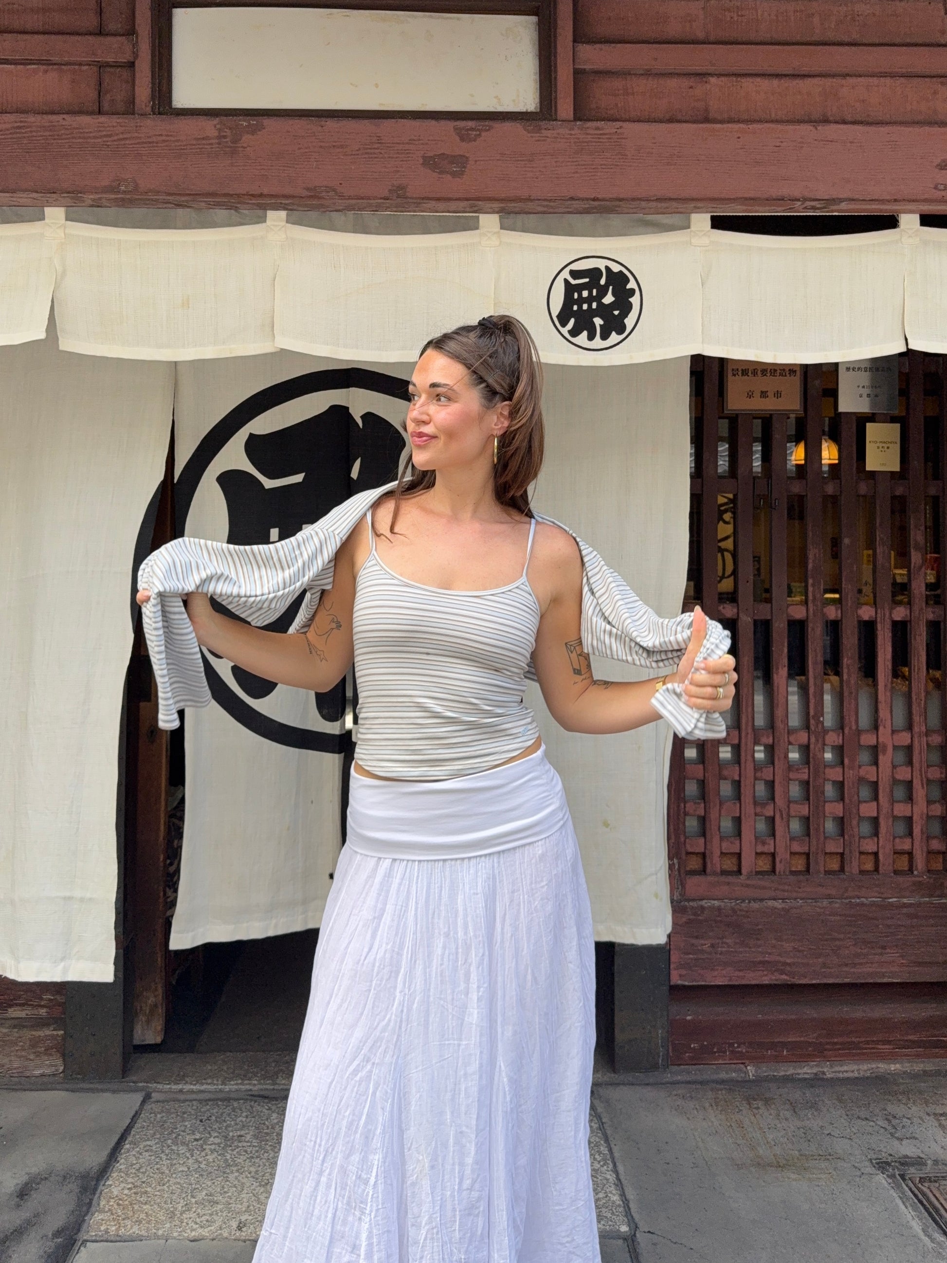 The soft spaghetti tops cut is similar to our soft tee long but with the cutest straps you can image.