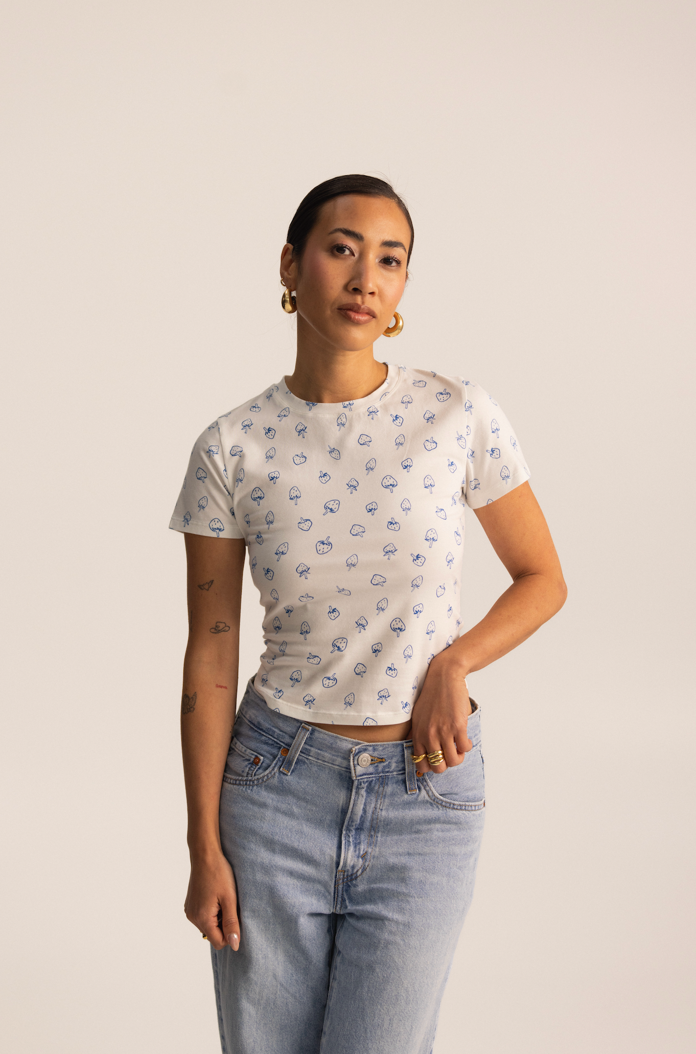 Crafted with premium quality in mind, our tees are made from a soft and breathable blend of fabrics. It offers a pleasant feel on the skin and allows for effortless movement throughout the day. The fabric blend consists of 90% organic cotton and 10% elastane.